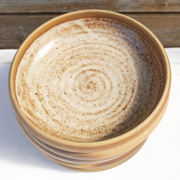 5 assiettes creuses en grès signé Roger Jacques, à Saint-Amand. Les assiettes sont de très belle facture, les dégradés de couleur sont très élégants.