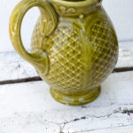 Carafe en céramique vert émaillé. Son décor est régulier et travaillé. Une signature « LJ » est visible sur le socle.