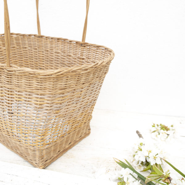 Panier vintage en osier datant des années 70. Par ses anses et sa grande capacité, ce panier est un compagnon idéal pour partir au marché, à la plage ou en accessoire de rangement à la maison !