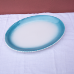 Plat de service bleu turquoise de forme ovale, signé au dos » FB 30″ pour Fenal Frères Badonviller.