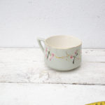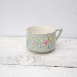 Tasse de la faïencerie de Digoin, à décor de fleurs et de papillons. Le décor est réhaussé de doré, apposé à la main. Les tonalités de couleur sont très douces.