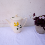 Théière de la faïencerie Villeroy et Boch, modèle Ophélia avec son décor de fleur jaune, élégante.