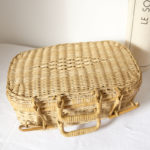 Valise en osier vintage de forme rectangulaire.